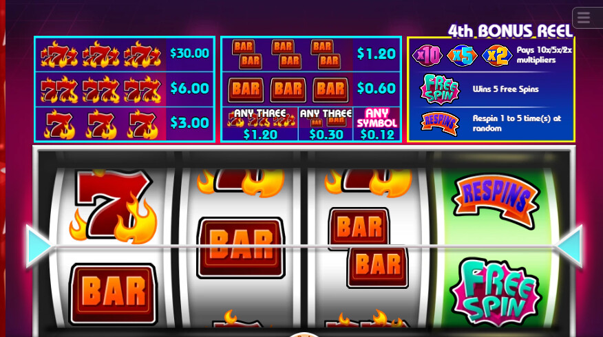Reel 4 is the Bonus Zone!Trigger multipliers (2x, 5x, 10x), Free Spins (5 spins with no scatter), & Respins (boost your wins 1-5 times)!