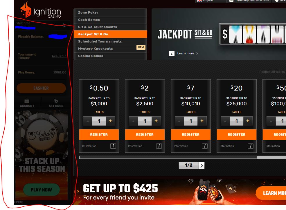 The Ignition “poker client” is a software program that connects you to our online poker network and provides all the great poker games on our schedule. Not only can you play cash games and tournaments on your computer, our client also gives you access to Ignition Casino, where you can play online slots, table games like roulette and blackjack, and all kinds of specialty games like bingo and Keno. Take a moment to browse through all the games we offer, and find the ones that you like best.